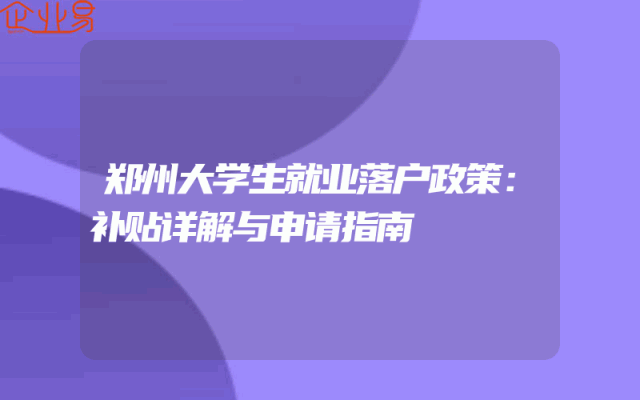 - 郑州大学生就业落户政策:补贴详解与申请指南