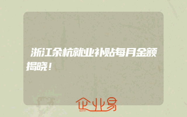 - 浙江余杭就业补贴每月金额揭晓!政策简述近日,浙江余杭区的就业补贴政策成为了当地就业市场的焦点话题。随着政策的进一步落实,每月的就业补贴金额也正式揭晓,给当地的就业者和企业带来了实实在在的利好。余杭区的这一政策旨在鼓励更多人选择本地就业,同时