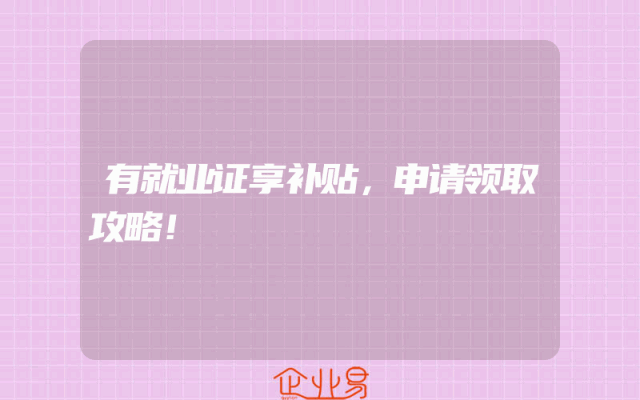- 就业证享补贴,申请领取攻略!一、了解就业证享补贴政策首先,我们需要对就业证享补贴政策有一个全面的了解。就业证享补贴是为了鼓励就业,促进劳动力市场的发展,政府针对持有有效就业证的人群推出的一项福利政策。该政策根据不同地区和行业可能会有不同的规