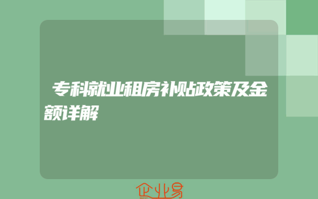 - 专科就业租房补贴政策及金额详解