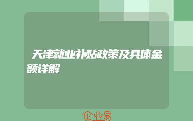 - 天津就业补贴政策及具体金额详解