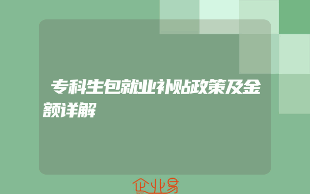 - 专科生包就业补贴政策及金额详解