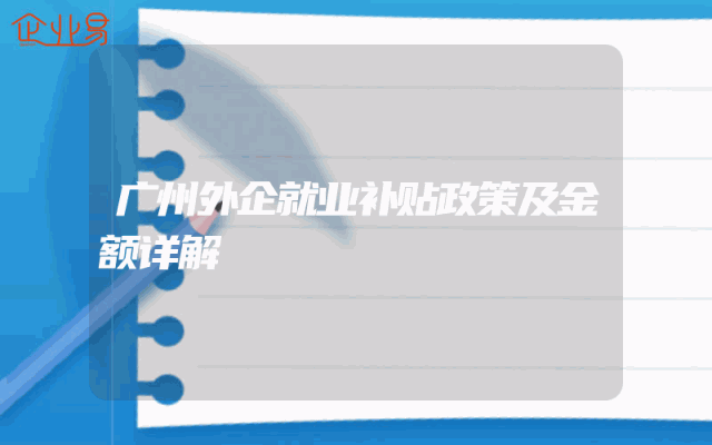 - 广州外企就业补贴政策及金额详解
