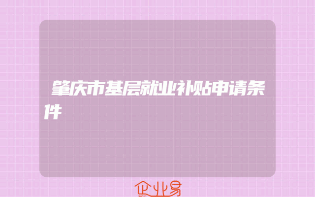 - 肇庆市基层就业补贴申请条件