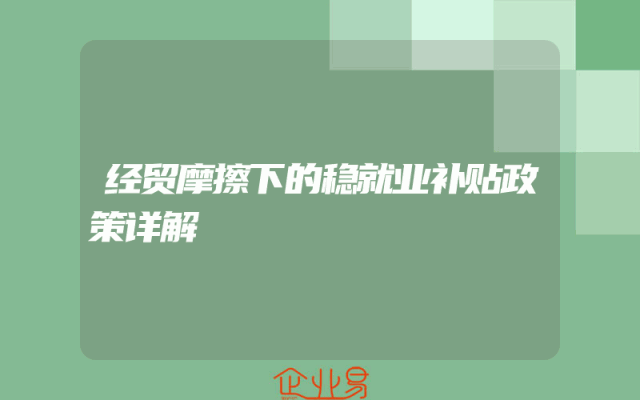 - 经贸摩擦下的稳就业补贴政策详解