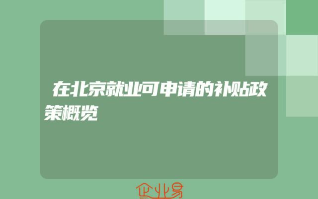 - 在北京就业可申请的补贴政策概览