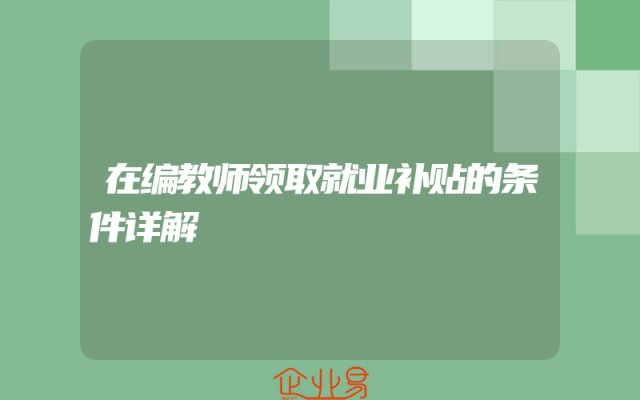 - 在编教师领取就业补贴的条件详解