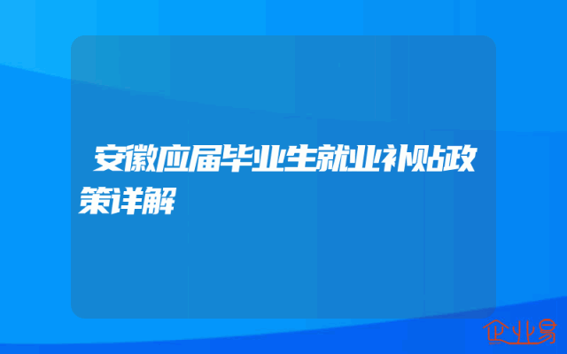 - 安徽应届毕业生就业补贴政策详解