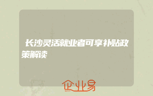 - 长沙灵活就业者可享补贴政策解读