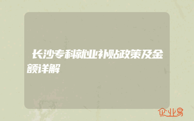 - 长沙专科就业补贴政策及金额详解