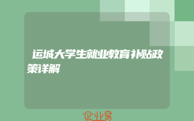 - 运城大学生就业教育补贴政策详解
