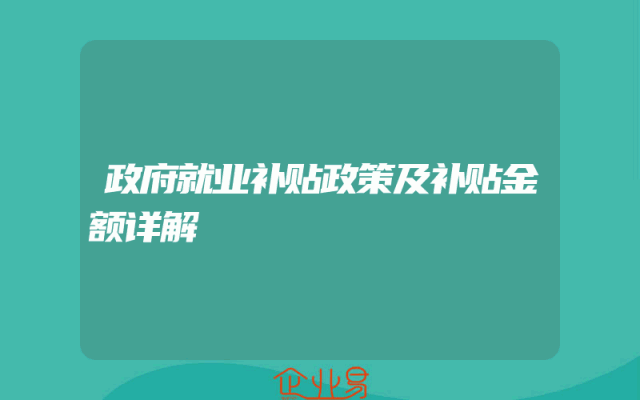- 政府就业补贴政策及补贴金额详解