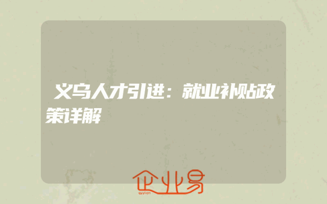- 义乌就业补贴政策及每月金额详解随着经济发展与社会就业形势的变化,义乌市逐渐出台了一系列的就业补贴政策,用以激励求职者与企业更好地服务于本地经济社会建设。下面详细解读这些政策以及相应的补贴金额。一、义乌就