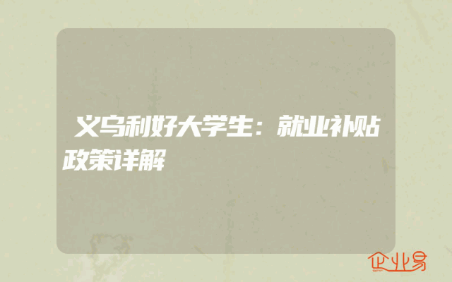 - 义乌利好大学生:就业补贴政策详解义乌市针对大学生的就业补贴政策概览义乌市作为中国经济的重要一环,一直秉持着创新、开放、务实的理念,为了吸引和扶持更多的大学生就业创业,出台了一系列的补贴政策。以下是针对大学生的就业补贴政策的详解。一、就业创业