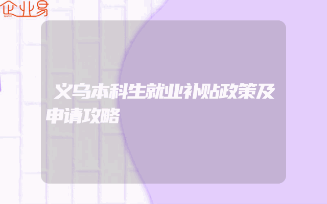 - 义乌本科生就业补贴政策及申请攻略一、义乌本科生就业补贴政策概述为了鼓励和支持高校毕业生就业,义乌市政府出台了一系列就业补贴政策,针对本科毕业生提供了相应的资金支持。这些政策旨在减轻毕业生就业压力,促进人才流动,推动地方经济发展。二、补贴政策