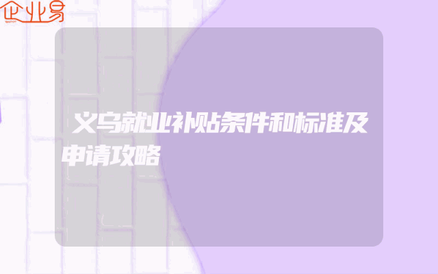 - 义乌就业补贴条件和标准及申请攻略一、义乌就业补贴概述义乌作为中国的贸易重镇,为鼓励人才在此地就业创业,推出了一系列的就业补贴政策。这些补贴旨在减轻就业压力,促进人才的引进和稳定就业。本文旨在详细介绍义乌就业补贴的条件、标准及申请攻略