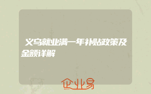 - 义乌就业满一年补贴政策及金额详解一、义乌就业满一年补贴政策概述义乌市为了鼓励就业稳定性,针对工作满一年的员工推出了相应的补贴政策。这一政策旨在提高员工的就业积极性,稳定企业的人力资源,促进企业与员工的共同发展。二、补贴政策的具体内容义乌市的