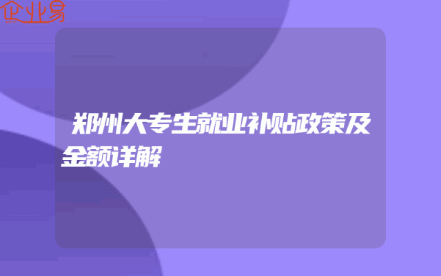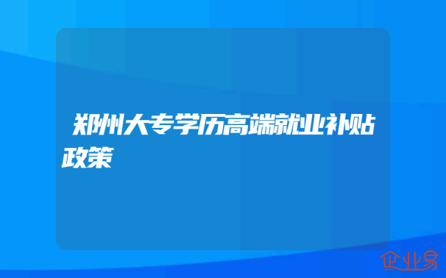 - 郑州大专生毕业就业享补贴政策扶持政策红利惠及大专毕业生,郑州推出就业补贴政策随着教育普及化的不断推进,大专毕业生数量逐年增加,就业压力也随之增大。为了支持大专毕业生顺利就业,郑州市政府推出了一系列就业补贴政策,为毕业生提供了实实在在的帮助。