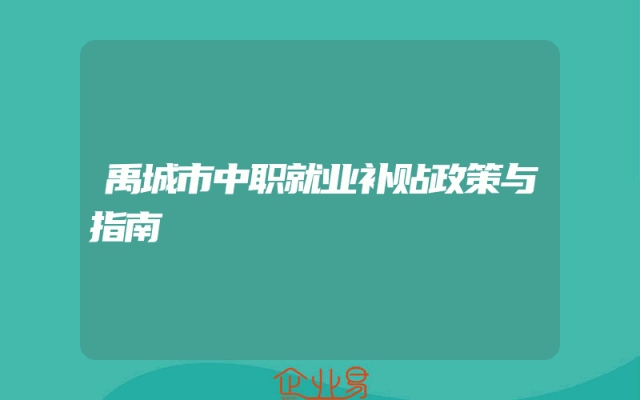- 禹城市中职就业补贴政策与指南