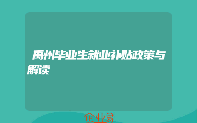 - 禹州毕业生就业补贴政策与解读