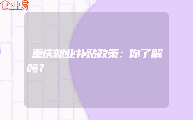 - 重庆就业补贴政策:你了解吗?