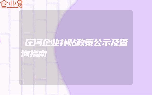 - 庄河企业补贴政策公示及查询指南一、庄河企业补贴政策公示为鼓励企业创新发展,庄河市出台了一系列企业补贴政策。这些政策旨在支持企业技术研发、产业升级、市场拓展等方面,降低企业运营成本,增强企业竞争力。近期,庄河市对最新的企业补贴政策进行了公示,