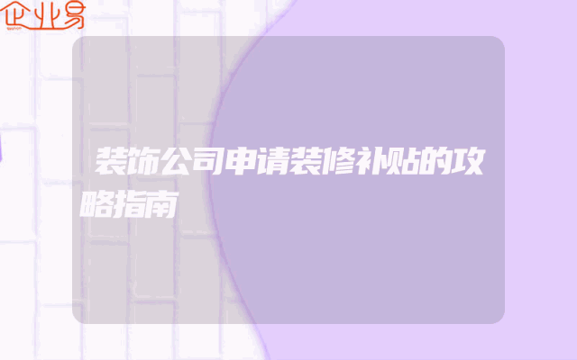 - 装饰公司申请装修补贴的攻略指南一、了解政策背景在申请装修补贴之前,装饰公司首先要了解相关的政策背景。各地的政府为了鼓励装修行业的发展,促进消费升级,会出台一系列的补贴政策。这些政策通常针对的对象是符合一定条件的装饰公司,因此,了解政策内容、