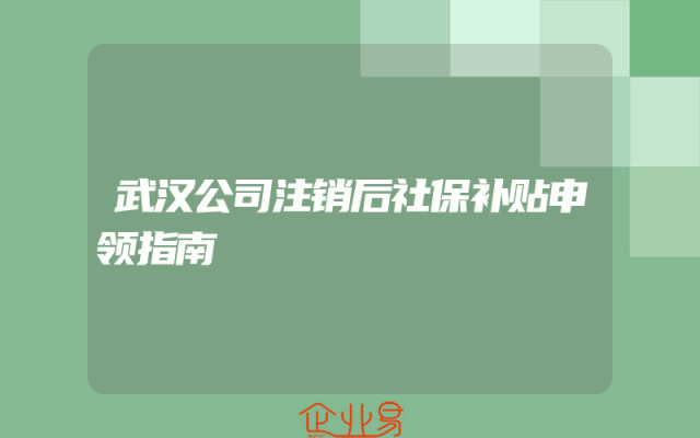 - 武汉公司注销后社保补贴申领指南