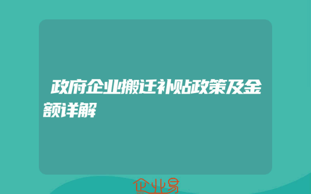 - 政府企业搬迁补贴政策及金额详解
