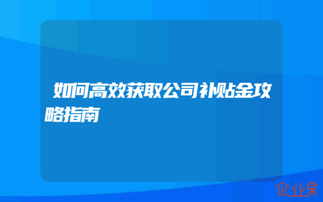 - 如何高效获取公司补贴金攻略指南