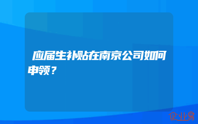 - 应届生补贴在南京公司如何申领?