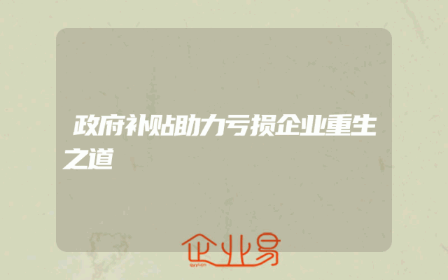 - 政府补贴助力亏损企业重生之道