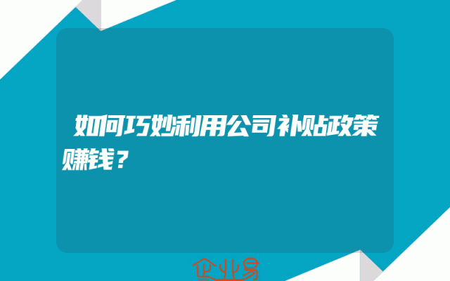 - 如何巧妙利用公司补贴政策赚钱?