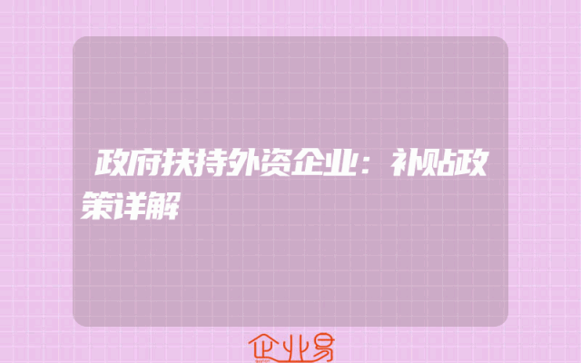 - 政府扶持外资企业:补贴政策详解