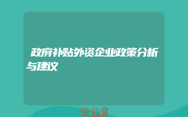 - 政府补贴外资企业政策分析与建议