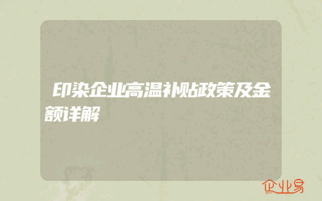 - 印染企业高温补贴政策及金额详解