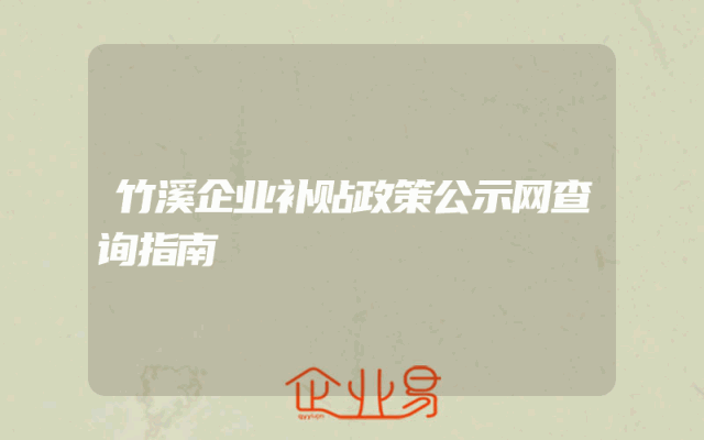 - 竹溪企业补贴政策公示网查询指南一、引言随着政府对中小企业扶持力度的加大,各类补贴政策成为企业发展的重要助力。竹溪企业补贴政策公示网作为公开透明的信息发布平台,旨在为企业提供最新、最全面的补贴政策信息。