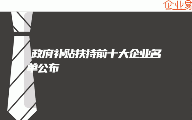 - 政府补贴扶持前十大企业名单公布扶持政策的背景及目的在当今社会,政府越来越关注中小企业的发展,以优化国家经济结构,激发市场活力。针对各行业的企业,政府出台了一系列的补贴扶持政策,旨在鼓励企业创新,扩大生产规模,提高市场竞争力。近日,政府补贴扶
