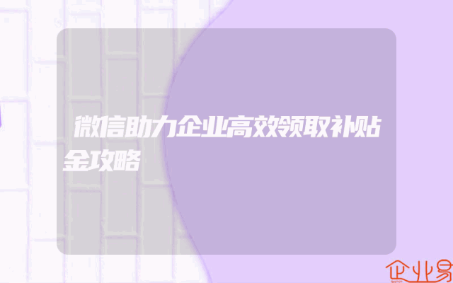 - 微信助力企业高效领取补贴金攻略一、了解政策,明确补贴对象与条件企业在领取补贴金之前,首要任务是了解相关政策。通过政府公告、新闻发布、行业报告等途径获取补贴信息,明确补贴的对象、申请条件、申请流程等关键信息。企业需确保自身符合政策规定的条件,