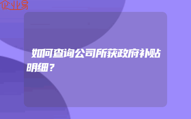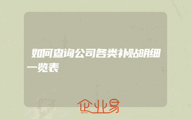 - 如何查询公司各类补贴明细一览表了解补贴政策的重要性随着国家对于企业发展的支持力度不断加大,各类补贴政策层出不穷。作为企业服务行业从业者,我们深知补贴对于企业的意义以及查询补贴明细的重要性。通过明确各类补贴的明细,企业能够更好地规划自身发展策