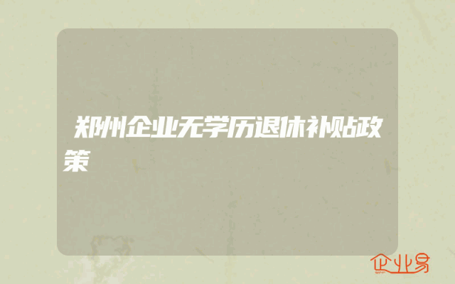 - 郑州企业无学历退休补贴政策解析一、背景概述随着社会的进步和经济的发展,我国对于劳动者的福利待遇越来越重视。在郑州市,针对企业中的无学历退休员工,政府推出了一系列的补贴政策,旨在保障这部分老年员工的晚年生活,促进社会公平和谐发展。二、
