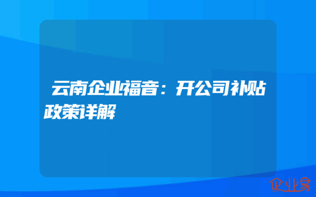 - 云南企业福音:开公司补贴政策详解