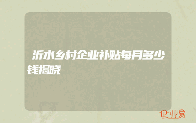 - 沂水乡村企业补贴每月多少钱揭晓一、补贴政策的背景与意义随着国家对于乡村振兴战略的深入推进,沂水乡村企业也迎来了发展的新机遇。为了鼓励更多的乡村企业加快发展,沂水市出台了一系列的补贴政策。这些补贴政策不仅有助于企业减轻负担,更能激发企业创新活