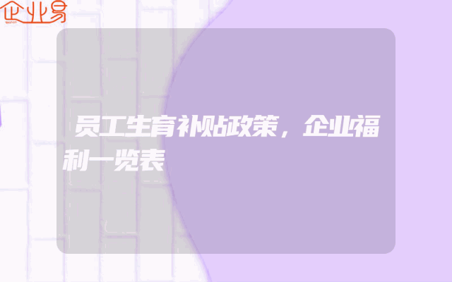 - 员工生育补贴政策:企业福利一览表一、引言在当今社会,随着人们对生育和养育下一代重要性的日益关注,不少企业也开始关注员工的家庭生活与事业发展之间的平衡问题。针对员工生育方面推出了一系列的补贴政策,旨在为
