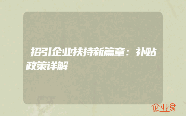 - 招引企业扶持新篇章:补贴政策详解一、补贴政策概述随着全球经济形势的不断变化,各国政府为了促进本国经济的持续发展,纷纷推出了一系列的补贴政策,旨在帮助企业应对挑战、提高竞争力。这些补贴政策覆盖了多个领域,包括但不限于技术研发、就业培训、环保建