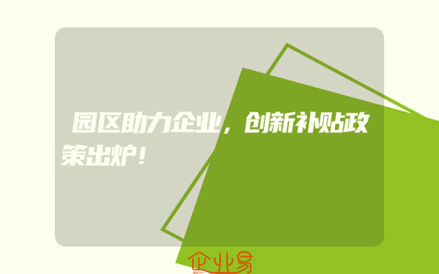 - 园区助力企业,创新补贴政策出炉!政策背景下的园区发展新动向在当前经济环境下,园区作为企业发展的核心载体,其在助力企业成长方面发挥着不可替代的作用。近期,园区创新补贴政策的出炉,无疑为园区内企业注入了新的活力。补贴政策的多维度解析新出炉的补贴