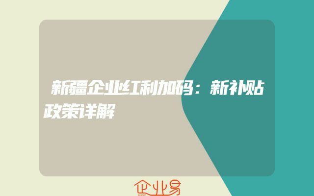 - 新疆企业红利加码:新补贴政策详解一、新疆企业迎来政策红利加码随着国家对西部地区的持续关注和扶持,新疆企业正面临着前所未有的发展机遇。近日,新疆地区推出了一系列新的补贴政策,旨在进一步支持当地企业的发展壮大。这些政策的出台,为新疆企业带来了实