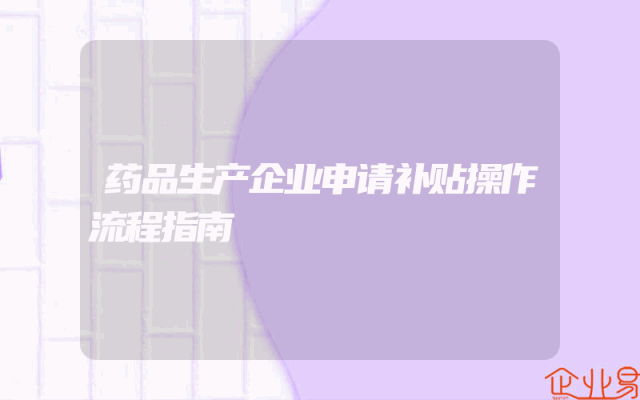 - 药品生产企业申请补贴操作流程指南