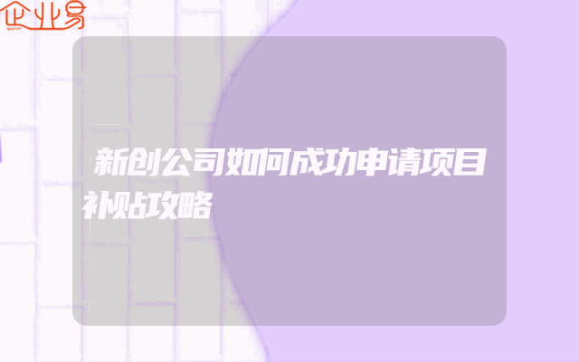 - 如何申请新创公司补贴?全面指南!一、了解补贴政策首先,对于新创公司来说,想要申请补贴,第一步就是要了解相关的补贴政策。政府及各级机构为了鼓励创新创业,会推出多种补贴政策,包括创业启动资金、税收减免、租金补贴等。可以通过政府官方网站、相关政府