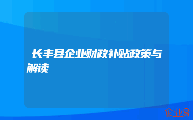 - 长丰县企业财政补贴政策与解读